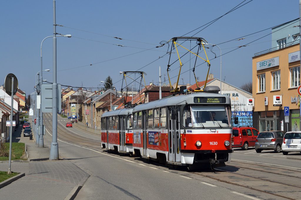 Fotografie ČKD Tatra T3T 1630 DPMB | ČKD Tatra T3T 1627 DPMB | Brno-Královo Pole, Kuřimská | Fotogalerie BMHD