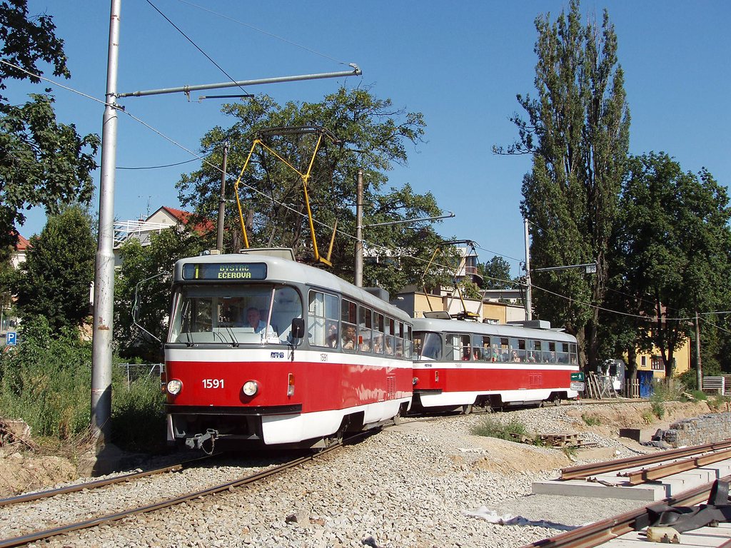 Fotografie ČKD Tatra T3M 1591 DPMB | ČKD Tatra T3M 1588 DPMB | Brno-Pisárky, Kamenomlýnská | Fotogalerie BMHD