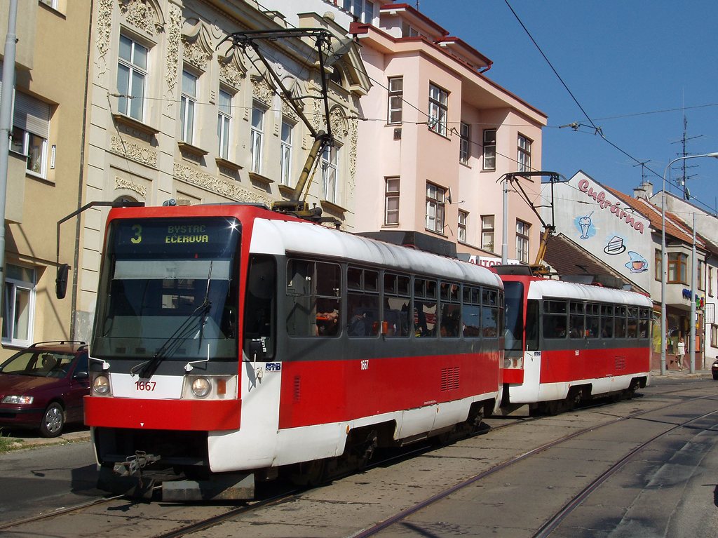 Fotografie ČKD DS T3R 1667 DPMB | ČKD DS T3R 1668 DPMB | Brno-Žabovřesky, Minská | Fotogalerie BMHD
