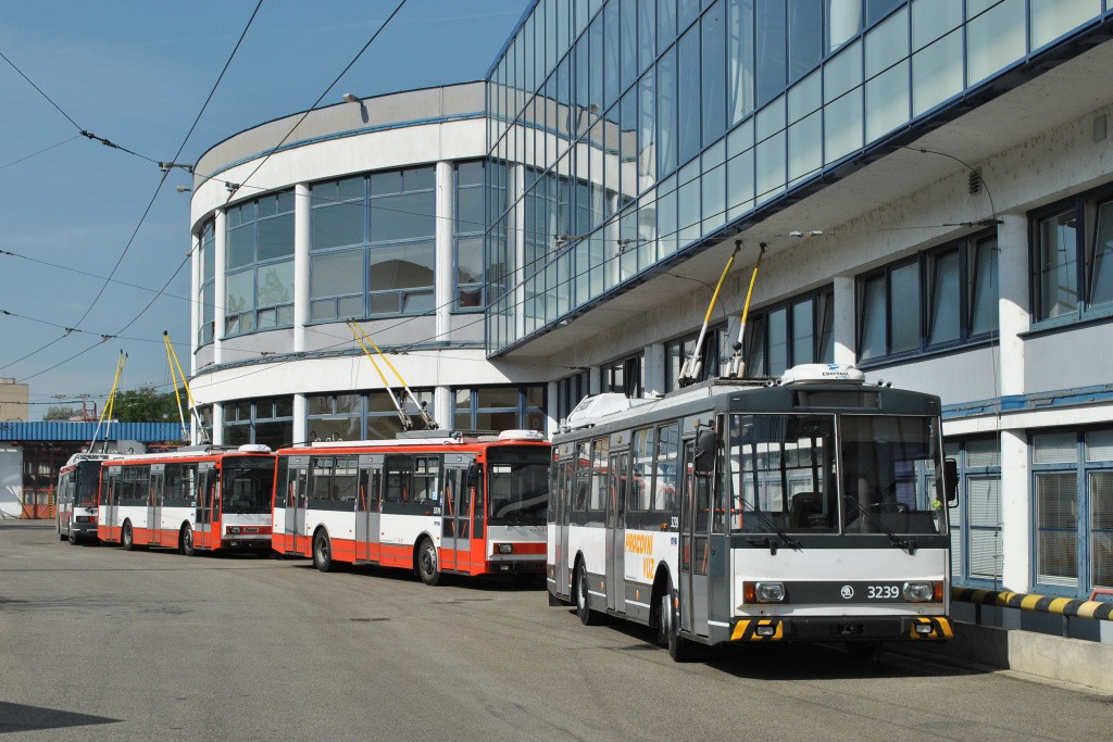 Fotografie Škoda 14 Tr10/6 3239 DPMB | Škoda 14 Tr17/6M 3276 DPMB | Škoda 14 Tr17/6M 3275 DPMB | Brno-Komín, vozovna Komín | Fotogalerie BMHD