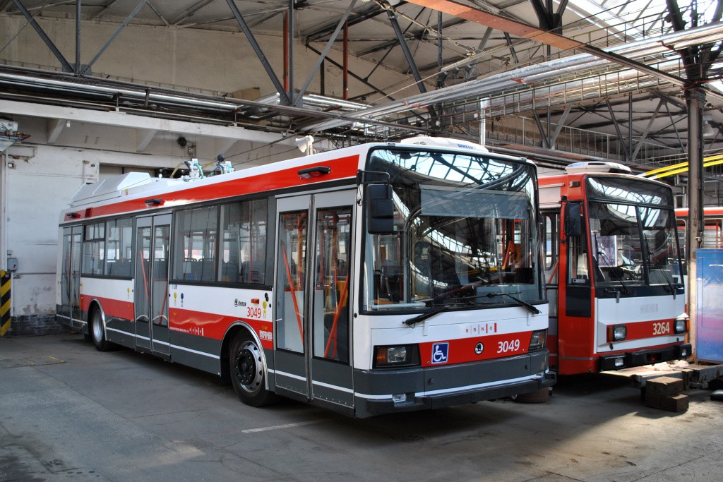 Fotografie Škoda 21 Tr 3049/II DPMB | Škoda 14 TrR 3264 DPMB | Brno-Husovice, vozovna Husovice | Fotogalerie BMHD