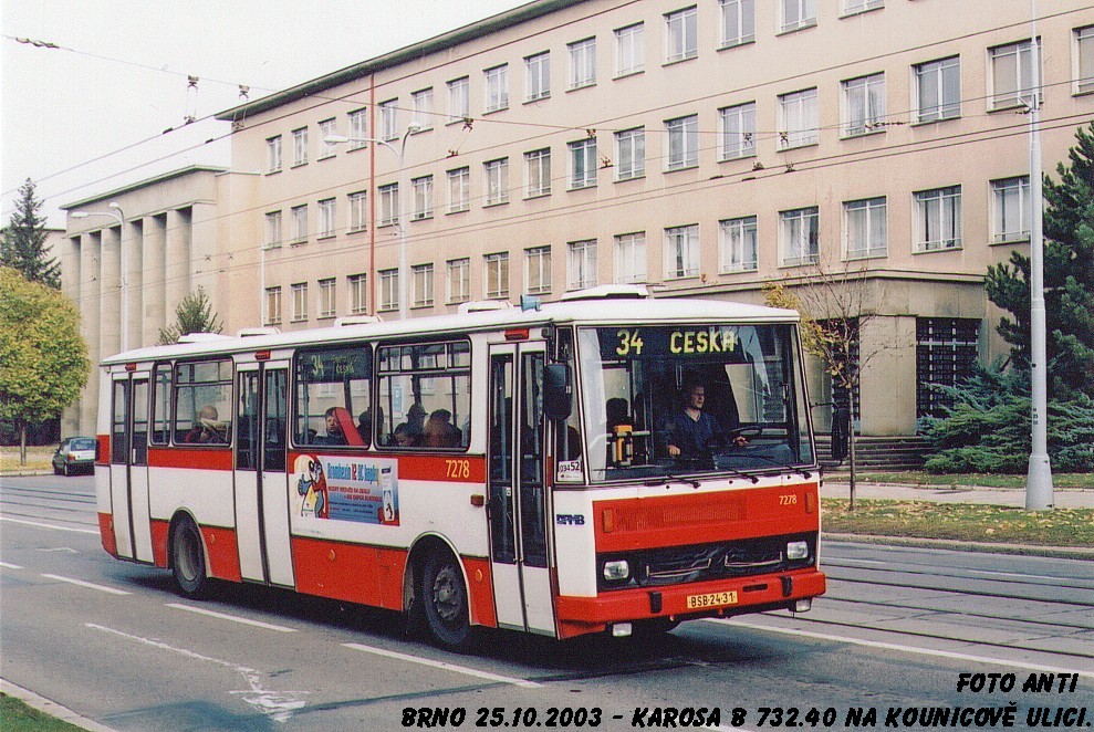 Fotografie Karosa B 732.40 7278 DPMB | Brno-Veveří, Kounicova | Fotogalerie BMHD