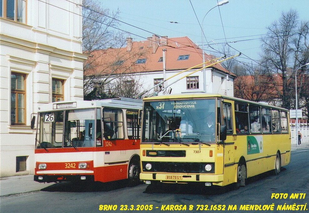 Fotografie Karosa B 732.1652 7307 DPMB | Škoda 14 Tr10/6 3242 DPMB | Brno-Staré Brno, Mendlovo náměstí | Fotogalerie BMHD