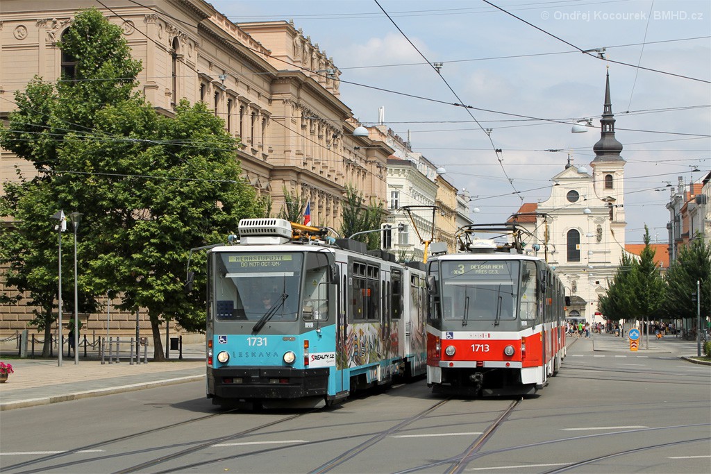 Fotografie ČKD Tatra KT8D5N 1731 DPMB | ČKD Tatra KT8D5R.N2 1713 DPMB | Brno-střed, Joštova | Fotogalerie BMHD