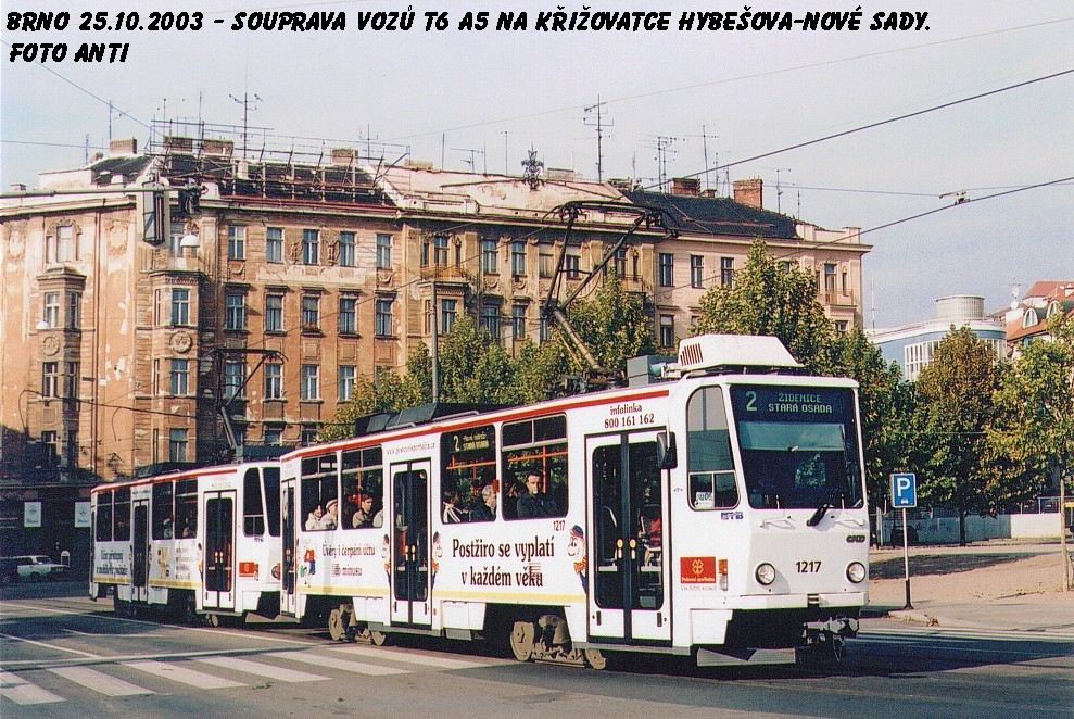 Fotografie ČKD DS T6A5 1217 DPMB | ČKD DS T6A5 1218 DPMB | Brno-střed, Hybešova | Fotogalerie BMHD