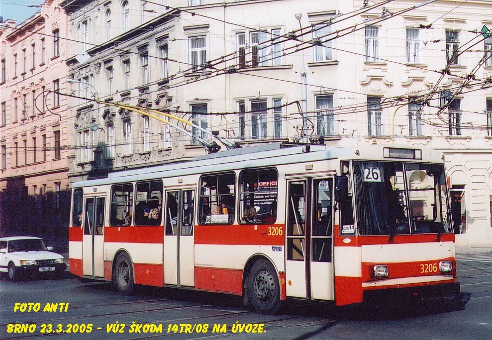 Fotografie Škoda 14 Tr08/6 3206 DPMB | Brno-Veveří, Úvoz | Fotogalerie BMHD