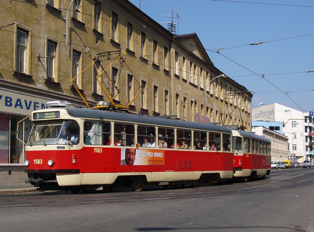 Fotografie ČKD Tatra T3P 1583 DPMB | ČKD Tatra T3P 1576 DPMB | Brno-Staré Brno, Hybešova | Fotogalerie BMHD