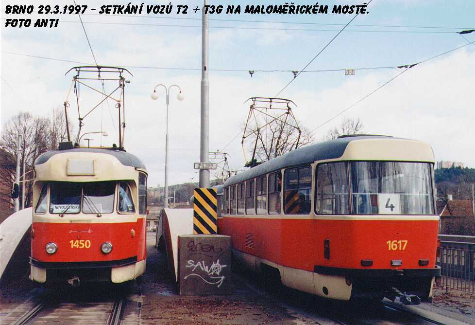 Fotografie Tatra T2R 1450 DPMB | ČKD Tatra T3SUCS 1617 DPMB | Brno-Husovice, Valchařská | Fotogalerie BMHD