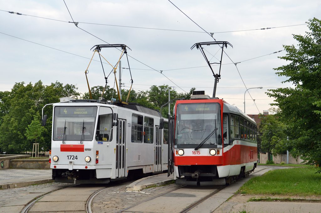 Fotografie ČKD Tatra T3R 1615 DPMB | ČKD Tatra KT8D5SU 1724 DPMB | Brno-Masarykova čtvrť, Náměstí Míru | Fotogalerie BMHD