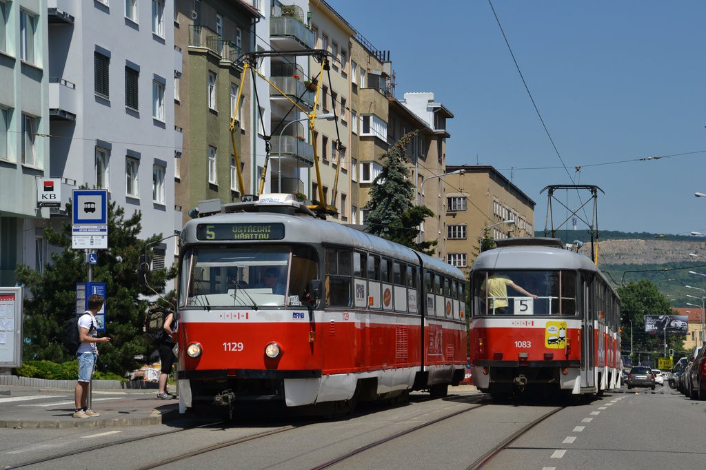 Fotografie ČKD Tatra K2 1129/II DPMB | ČKD Tatra K2 1083 DPMB | Brno-Černá Pole, Merhautova | Fotogalerie BMHD