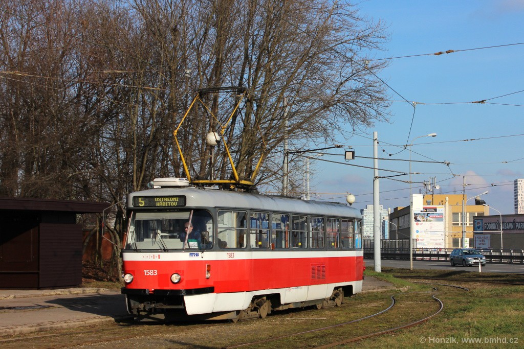Chvíli před nástupem do dílen na provedení velké prohlídky jezdila 1583 sólo nebo s T3R.PV 1658 z důvodu odstavení její "B" T3P 1576 Kvůli dlouhodobé výluce v ulici Milady Horákové spojené s celkovou rekonstrukcí ulice byla linka 5 v úseku Jugoslávská - Česká odkloněna ulicemi Cejl a Rooseveltovou. V nepracovních dnech na ni bývají nasazovány hlavně sólo vozy. Naopak v pracovních dnech kvůli 10minutovému intervalu na ní jezdí soupravy tramvají T3 a tramvaje typu 13T.