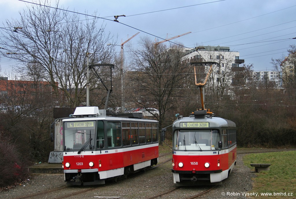 Fotografie ČKD DS T6A5 1203 DPMB | Pragoimex T3R.PV 1658/II DPMB | Brno-Líšeň, Novolíšeňská | Fotogalerie BMHD
