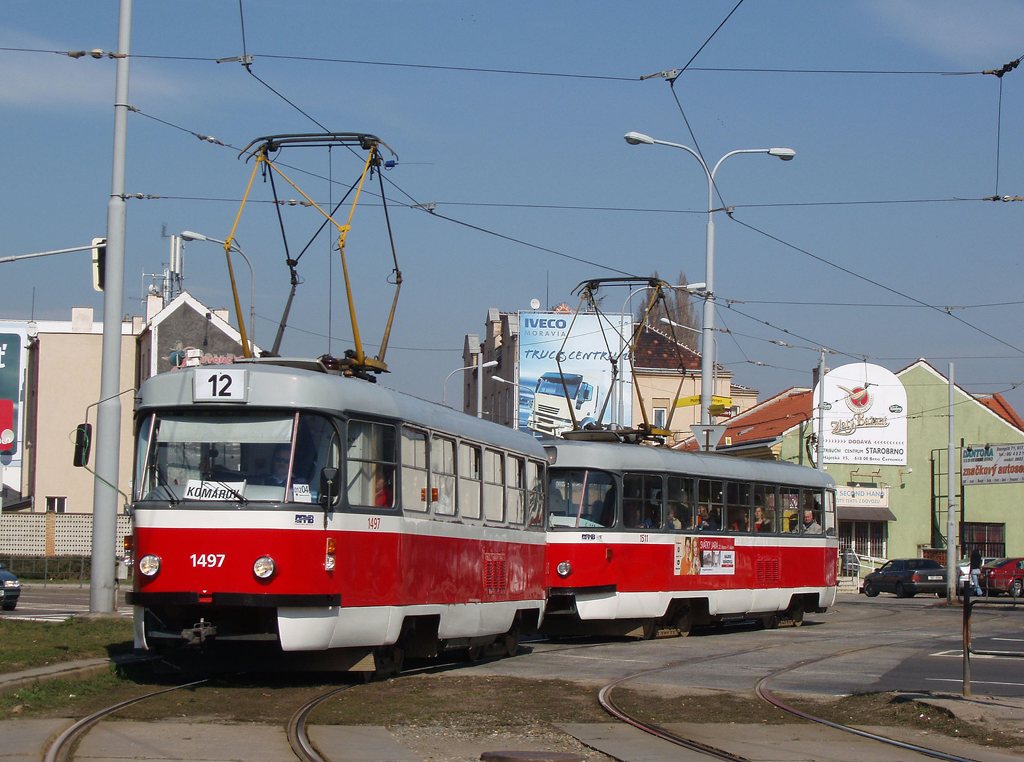 Fotografie ČKD Tatra T3 1497/II DPMB | ČKD Tatra T3 1511 DPMB | Brno-Komárov, Svatopetrská | Fotogalerie BMHD