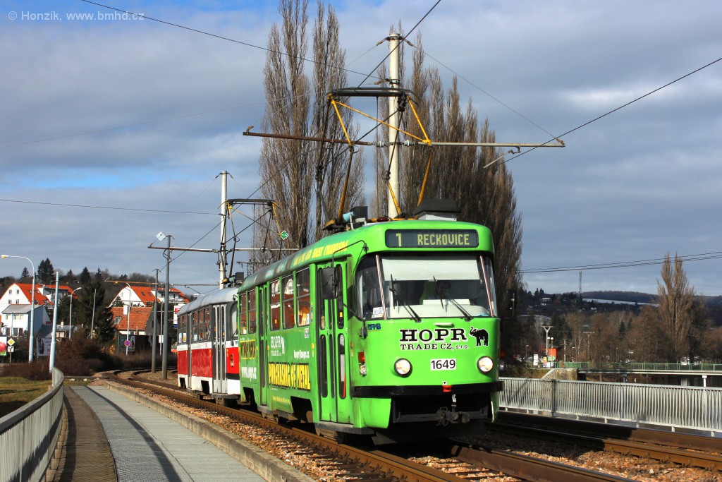 Fotografie ČKD Tatra T3G 1649 DPMB | ČKD Tatra T3G 1650 DPMB | Brno-Bystrc, Kníničská | Fotogalerie BMHD