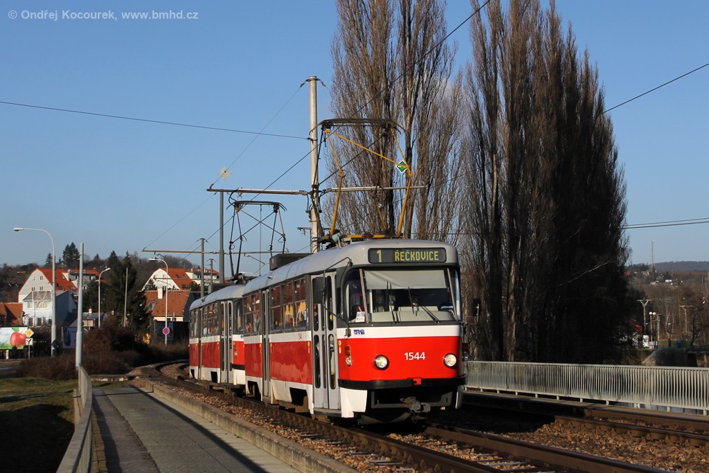 Fotografie ČKD Tatra T3M 1544 DPMB | ČKD Tatra T3M 1557 DPMB | Brno-Bystrc, Obvodová | Fotogalerie BMHD