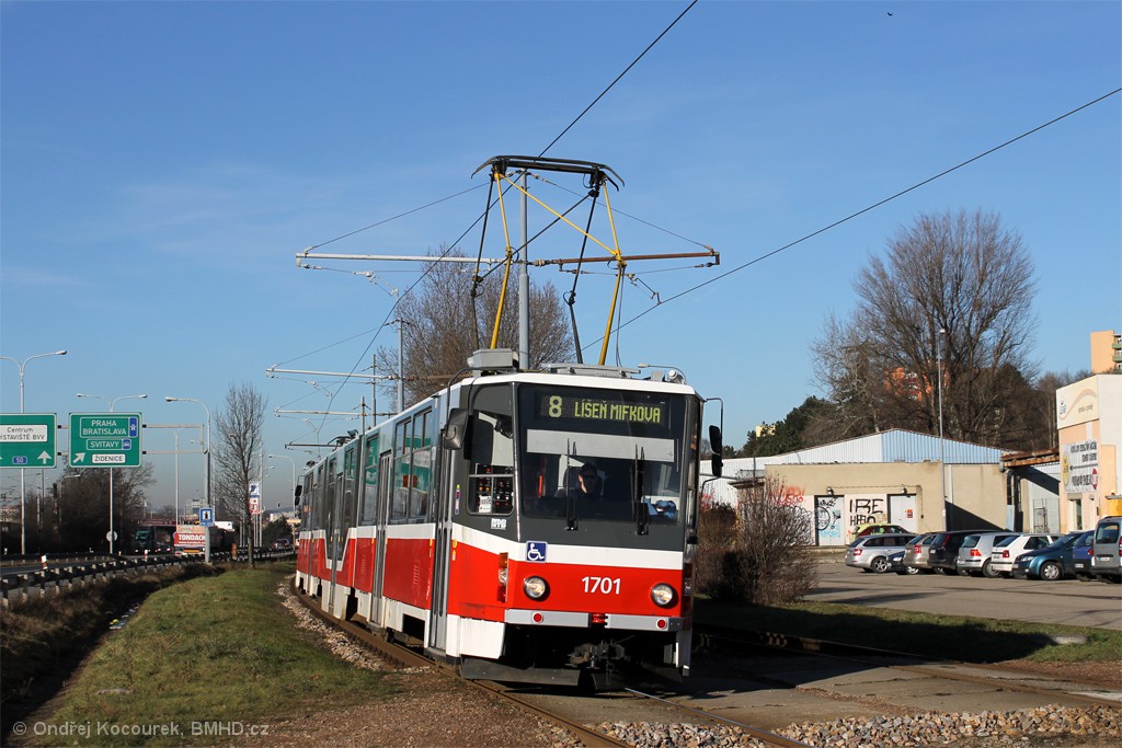 Fotografie ČKD Tatra KT8D5R.N2 1701 DPMB | Brno-Juliánov, Ostravská | Fotogalerie BMHD