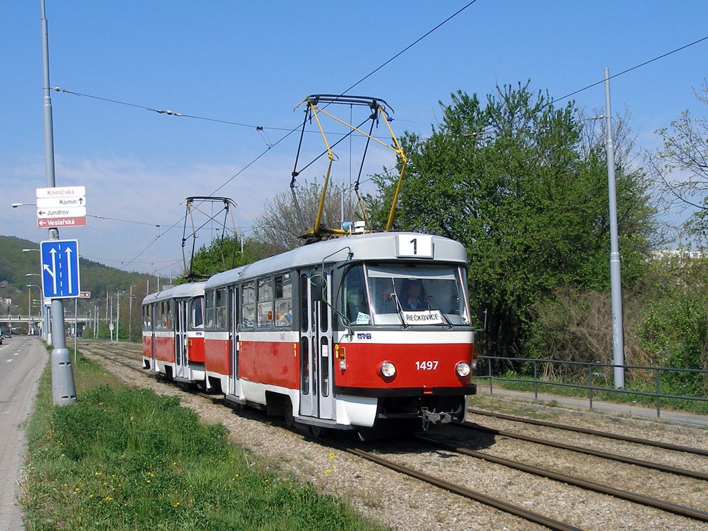 Fotografie ČKD Tatra T3 1497/II DPMB | ČKD Tatra T3 1511 DPMB | Brno-Žabovřesky, Kníničská | Fotogalerie BMHD