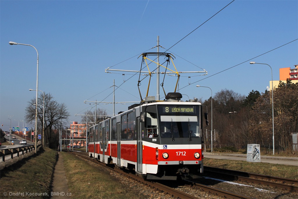 Fotografie ČKD Tatra KT8D5R.N2 1712 DPMB | Brno-Juliánov, Ostravská | Fotogalerie BMHD