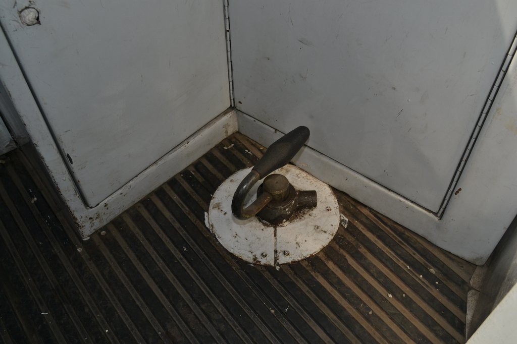 Původní vysokonapěťový odpojovač vozů K2. Pro přístup k pojistkám 600 V i 24 V je nutné jej vyjmout a tím při staženém pantografu uzemnit tramvaj. Vyjímá se postupným pootáčením a povytahováním.