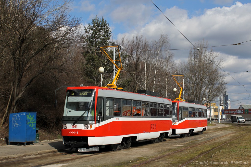 První vypravení T3R 1661+1662 po 2. VP. V souvislosti s dlouhodobou výlukou ulice Milady Horákové probíhající od 15. 3. 2014 došlo k odklonu linky 5 ulicemi Cejl a Rooseveltova, a zároveň k jejímu obsazení soupravami a tramvajemi 13T.
