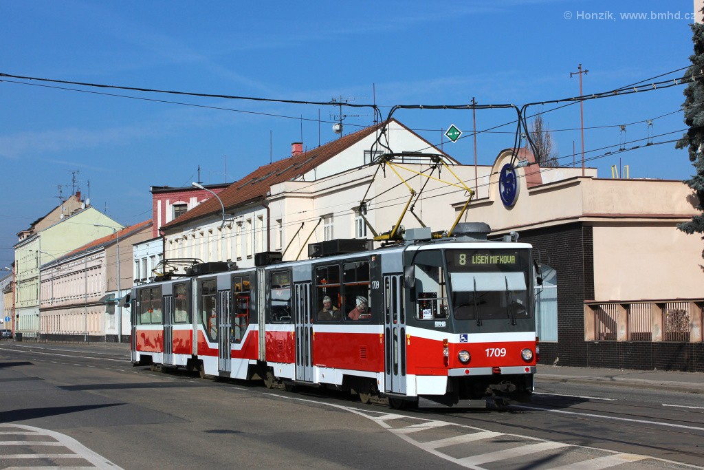 Fotografie ČKD Tatra KT8D5R.N2 1709 DPMB | Brno-Černovice, Olomoucká | Fotogalerie BMHD