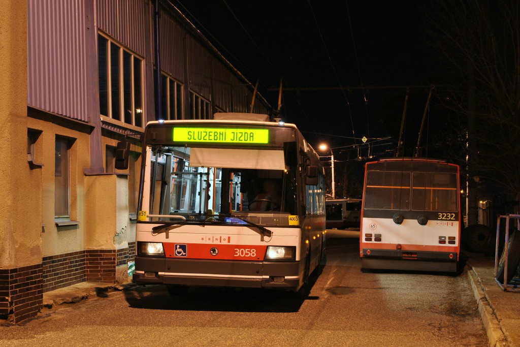 Fotografie Škoda 21 TrAC 3058/II DPMB | Škoda 14 Tr10/6 3232 DPMB | Brno-Slatina, vozovna Slatina | Fotogalerie BMHD