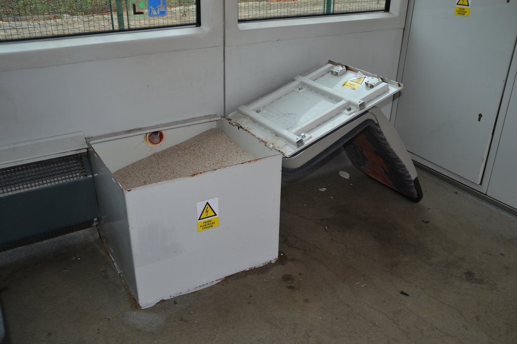 nádoba na písek s "mlýnkovým" pohonem Dioss na tramvajích Anitra.