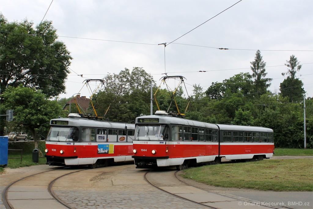 Fotografie ČKD Tatra K2T 1044 DPMB | ČKD Tatra K2T 1038 DPMB | Brno-Maloměřice, Obřanská | Fotogalerie BMHD