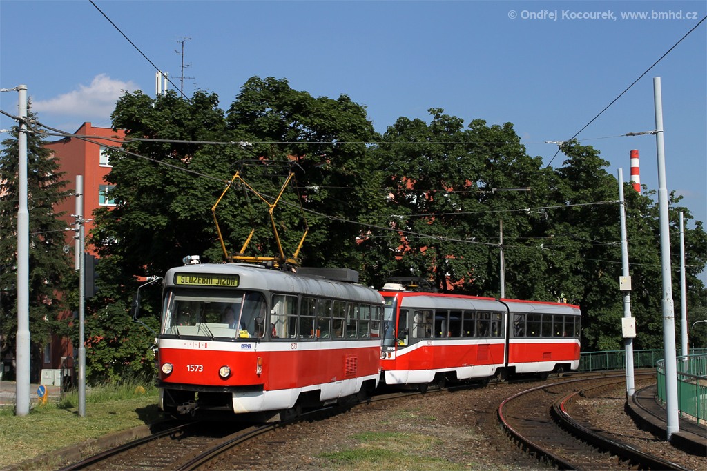 Fotografie ČKD Tatra T3M 1573 DPMB | ČKD Tatra K2R 1039 DPMB | Brno-Pisárky, Hlinky | Fotogalerie BMHD