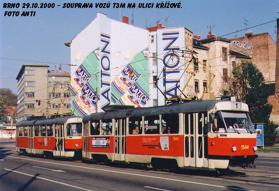 Fotografie ČKD Tatra T3M 1544 DPMB | Brno-Staré Brno, Křížová | Fotogalerie BMHD