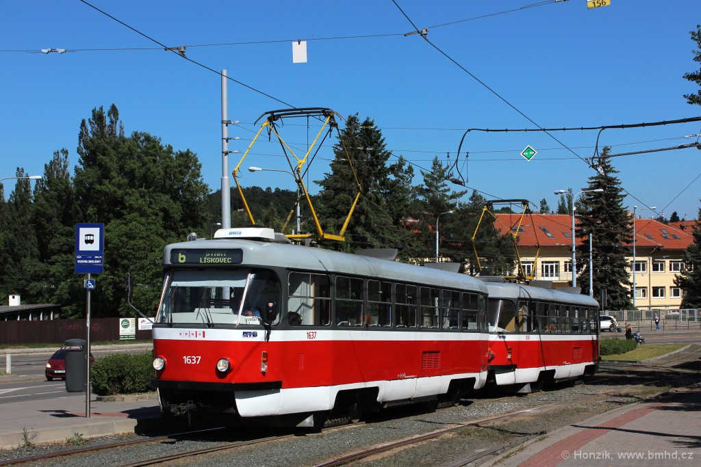Fotografie ČKD Tatra T3G 1637 DPMB | ČKD Tatra T3G 1638 DPMB | Brno-Medlánky, Hudcova | Fotogalerie BMHD