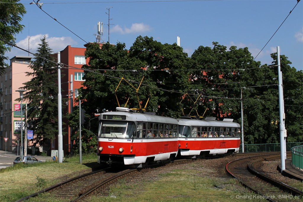 Fotografie ČKD Tatra T3P 1628 DPMB | ČKD Tatra T3P 1629 DPMB | Brno-Pisárky, Hlinky | Fotogalerie BMHD