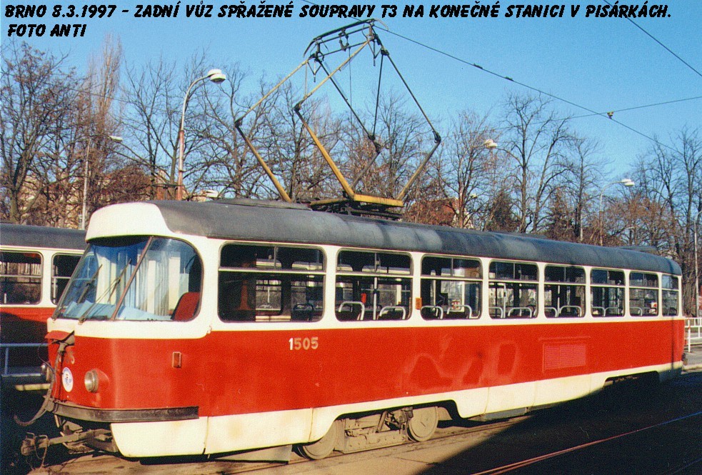 Fotografie ČKD Tatra T3 1505 DPMB | Brno-Pisárky, Hlinky | Fotogalerie BMHD