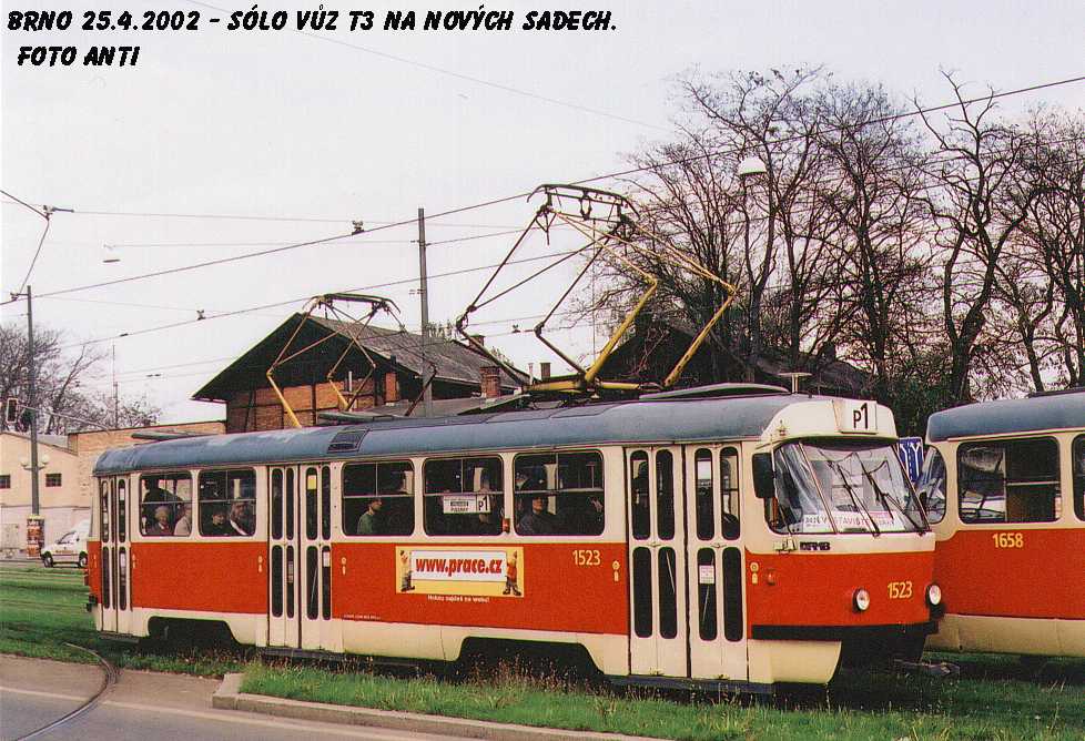 Fotografie ČKD Tatra T3 1523 DPMB | Brno-Staré Brno, Nové sady | Fotogalerie BMHD
