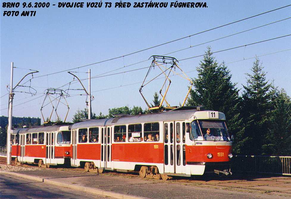 Fotografie ČKD Tatra T3 1551 DPMB | ČKD Tatra T3 1552 DPMB | Brno-Lesná, třída Generála Píky | Fotogalerie BMHD