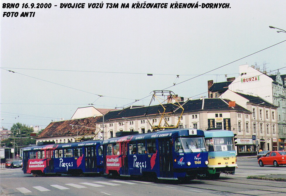 Fotografie ČKD Tatra T3M 1568 DPMB | ČKD Tatra T3M 1566 DPMB | ČKD Tatra T3SUCS 1629 DPMB | Brno-Trnitá, Dornych | Fotogalerie BMHD