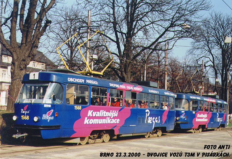 Fotografie ČKD Tatra T3M 1568 DPMB | ČKD Tatra T3M 1566 DPMB | Brno-Pisárky, Hlinky | Fotogalerie BMHD