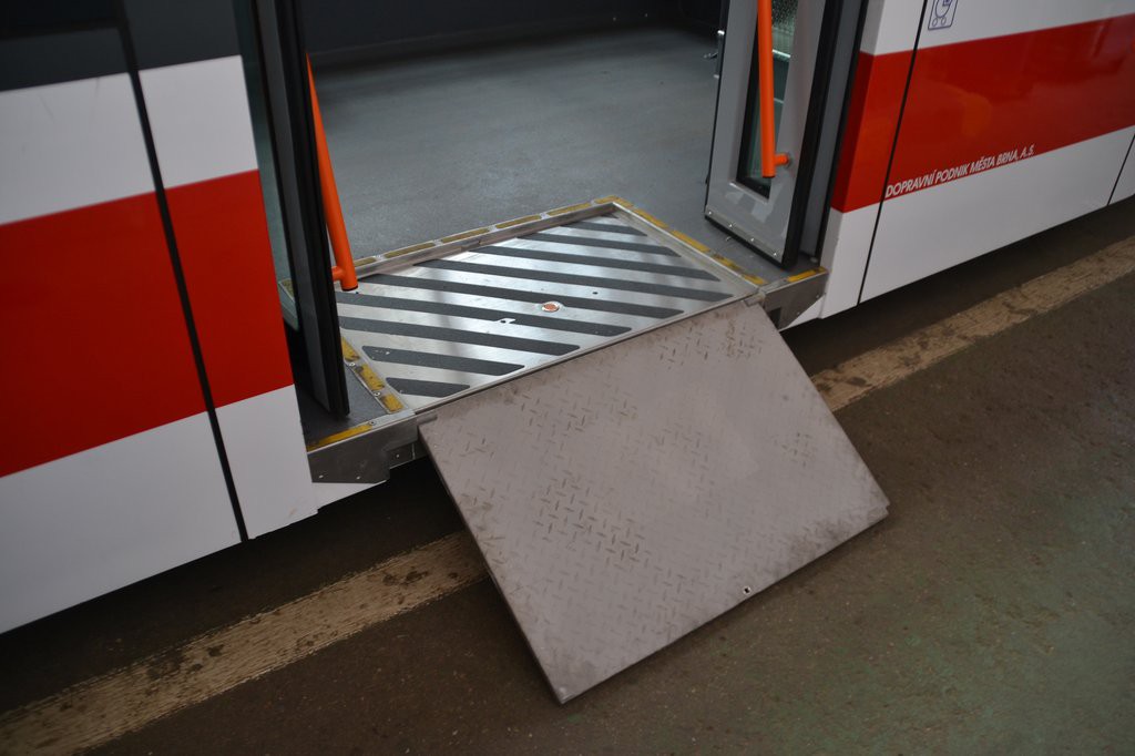 vyklopená manuální plošina pro vozíčkáře u vozů VarioLFR.E (instalovaná od roku 2013)