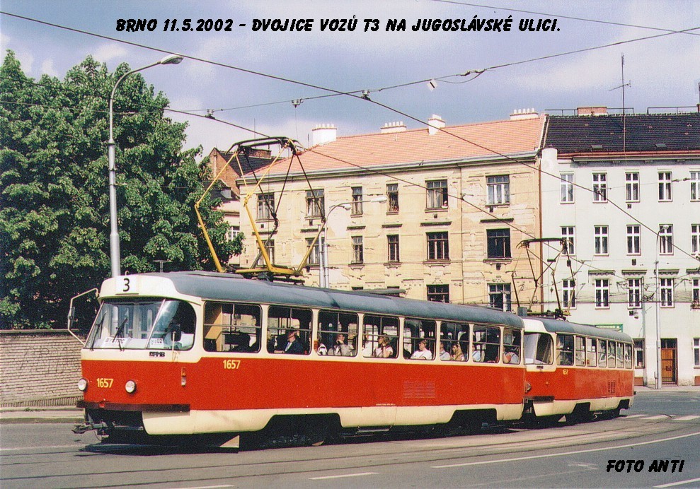 Fotografie ČKD Tatra T3 1657 DPMB | ČKD Tatra T3 1658 DPMB | Brno-Černá Pole, Jugoslávská | Fotogalerie BMHD