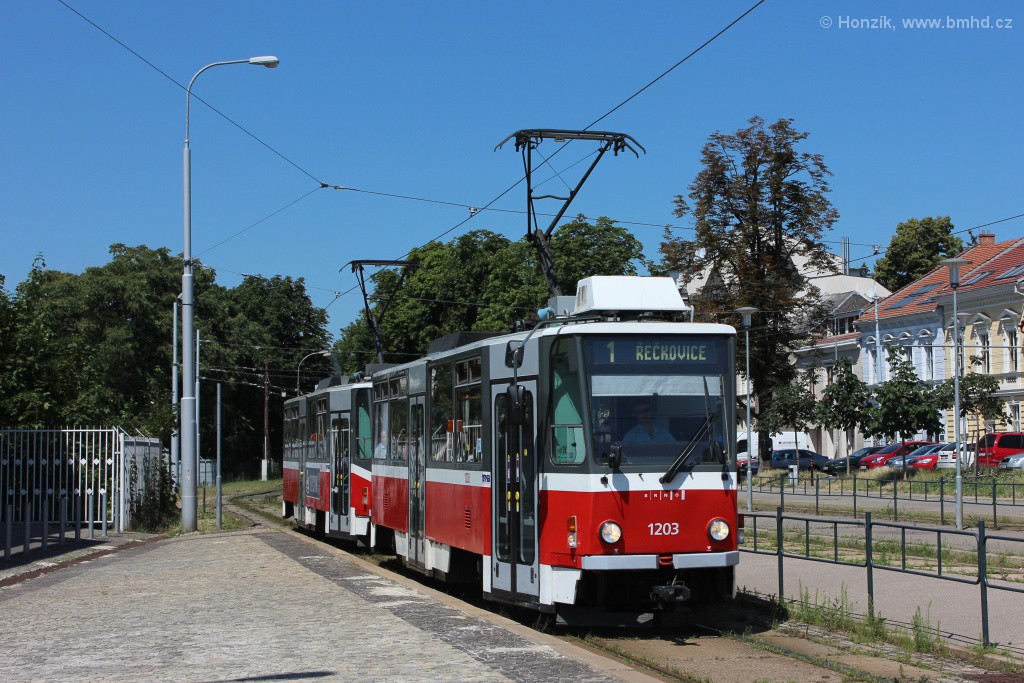Fotografie ČKD DS T6A5 1203 DPMB | ČKD DS T6A5 1204 DPMB | Brno-Pisárky, Hlinky | Fotogalerie BMHD