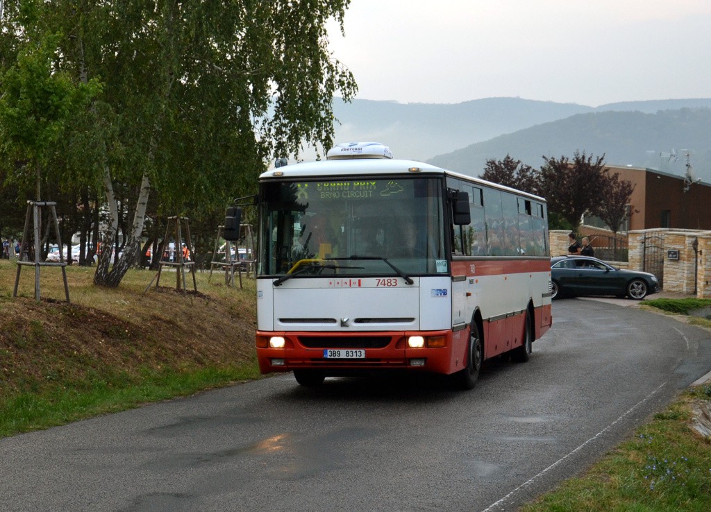 Posilová linka X, která jezdila v trase Žebětín - Automotodrom, start kolem kempů a tribun v době konání Velké ceny ČR.