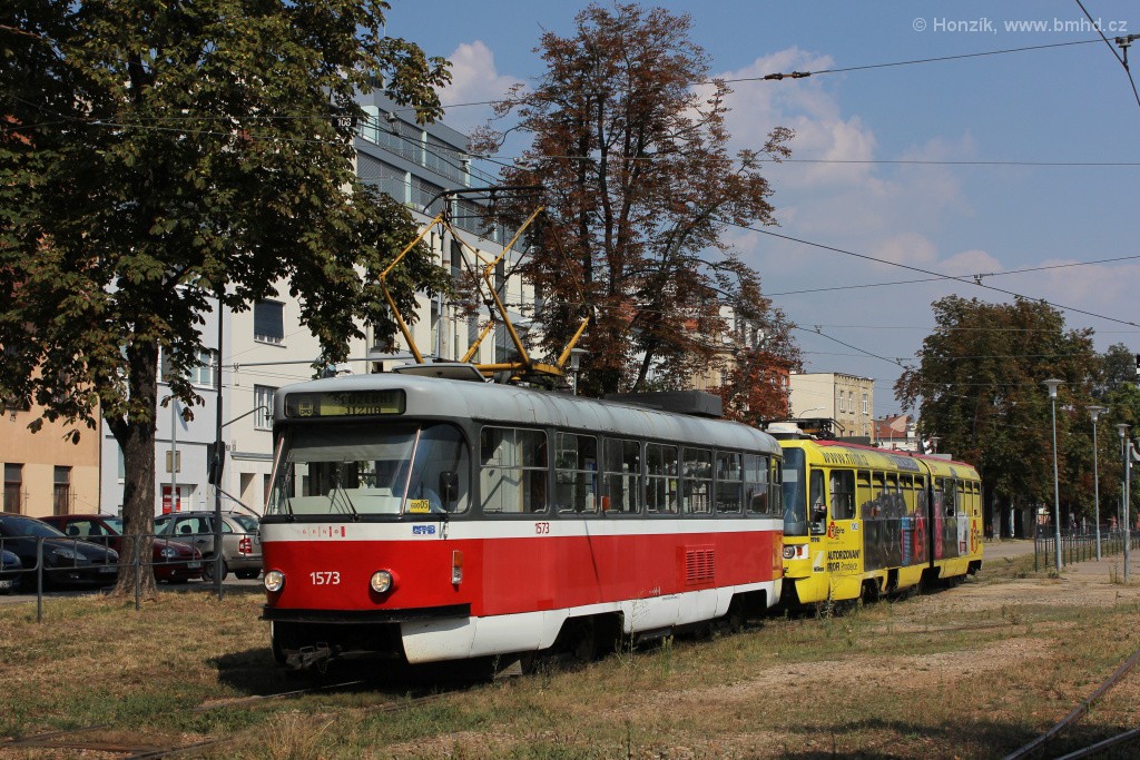 Fotografie ČKD Tatra T3M 1573 DPMB | ČKD Tatra K2R 1003 DPMB | Brno-Pisárky, Hlinky | Fotogalerie BMHD