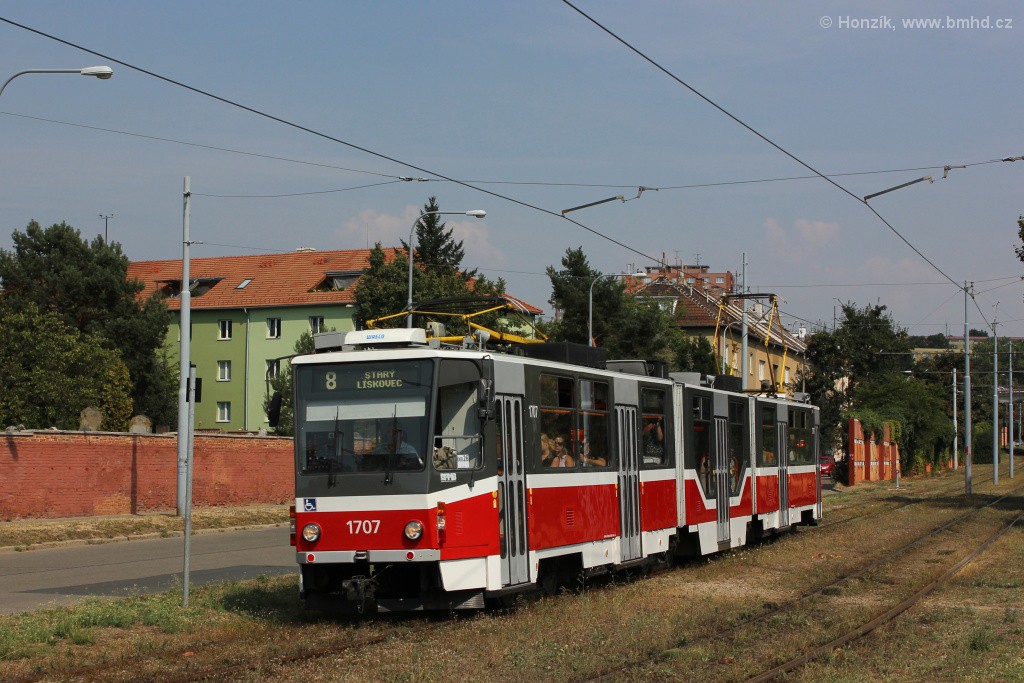 Fotografie ČKD Tatra KT8D5R.N2 1707 DPMB | Brno-Židenice, Nezamyslova | Fotogalerie BMHD