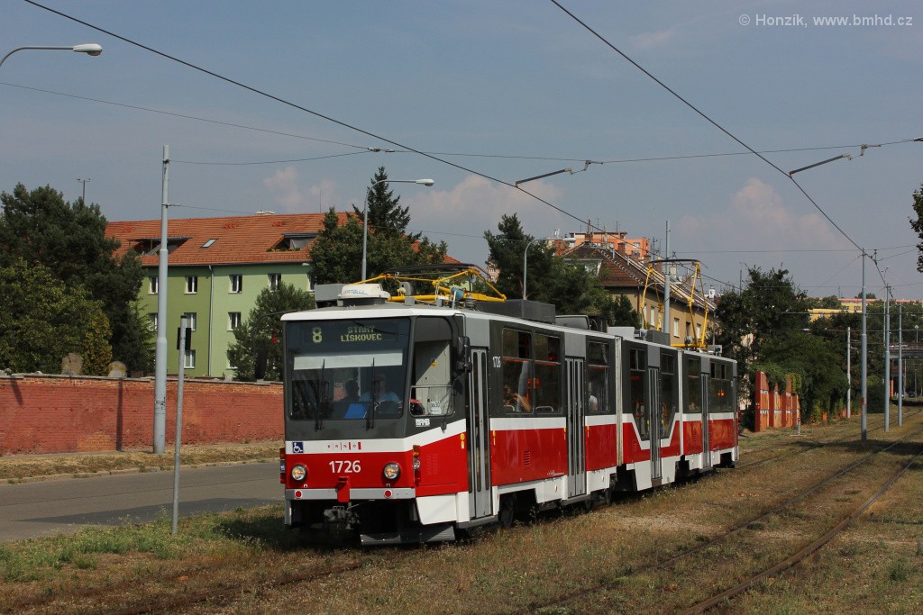 Fotografie ČKD Tatra KT8D5R.N2 1726 DPMB | Brno-Židenice, Nezamyslova | Fotogalerie BMHD