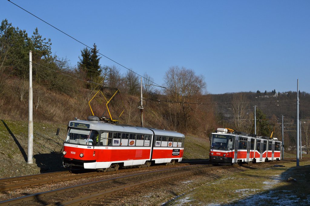 Fotografie ČKD Tatra K2T 1038 DPMB | ČKD Tatra KT8D5N 1732 DPMB | Brno-Bystrc | Fotogalerie BMHD