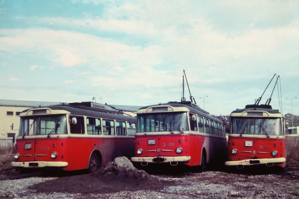 Fotografie Škoda 9 Tr19 3091 DPMB | Škoda 9 Tr19 3088 DPMB | Škoda 9 Tr20 3102 DPMB | Brno, Vozovna Slatina | Fotogalerie BMHD