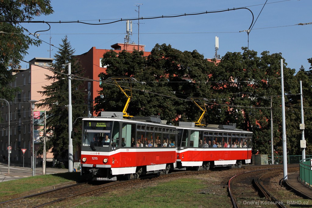 Fotografie ČKD DS T6A5 1215 DPMB | ČKD DS T6A5 1216 DPMB | Brno-Pisárky, Hlinky | Fotogalerie BMHD
