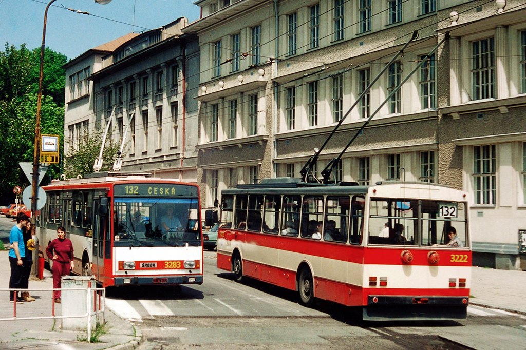 Fotografie Škoda 14 Tr17/6M 3283 DPMB | Škoda 14 Tr08/6 3222 DPMB | Brno-Královo Pole, Slovanské náměstí | Fotogalerie BMHD