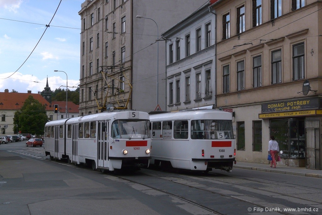 Fotografie ČKD Tatra K2 1090 DPMB | ČKD Tatra K2 1088 DPMB | Brno-Staré Brno, Pekařská | Fotogalerie BMHD