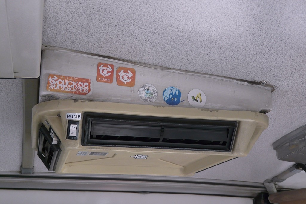Pohled na zvlhčovač vzduchu Trav-l-Cool z kabiny řidiče.